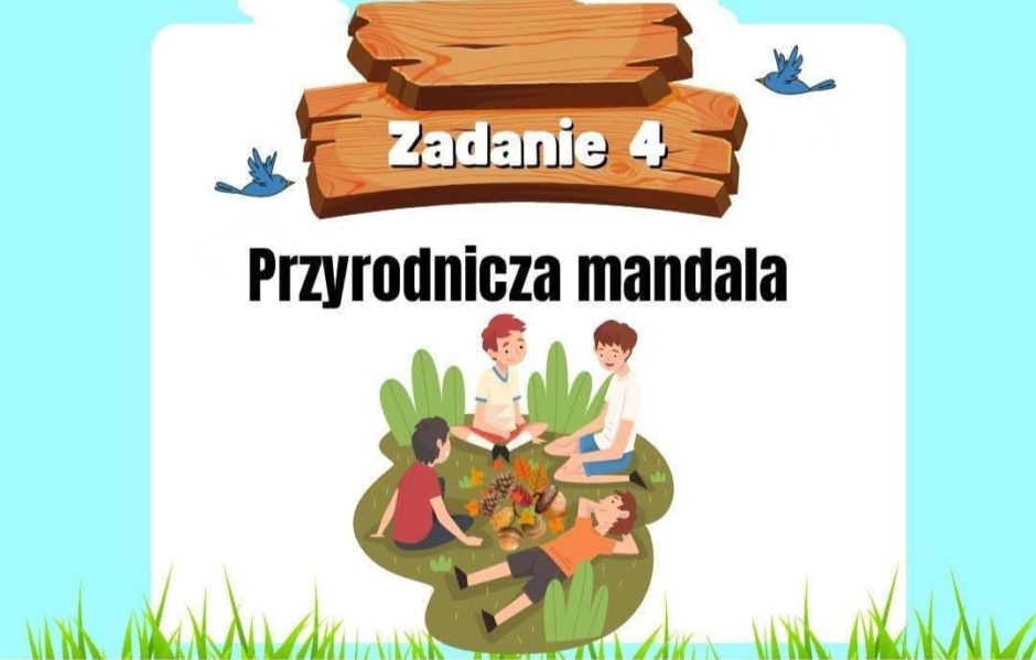 Przyrodnicza mandala – wspólne, twórcze chwile na naszym szkolnym boisku. Dzieci ułożyły mandalę z orzechów zebranych w ogrodzie korzystając z cieplejszego jesiennego dnia.
