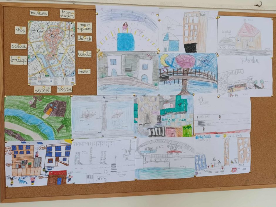 Miesiąc nauki za nami. Rozpoczęliśmy rok szkolny i lekcje w ramach programu Future4me od wspomnień z wakacji oraz poznania szkoły i znajdujących się w niej miejsc, a następnie poznania swojego miasta. Dzieci stworzyły prace przedstawiające swoją okolicę, swoje miasto. W większym bądź mniejszym zakresie opisały, co się znajduje wokół nich. Niemniej jednak wyszło ciekawie i kolorowo.