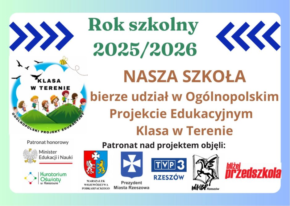 Klasa w terenie 2025/2026 10.09.2025 | Małgorzata Jałocha W roku szkolnym 2025/2026 klasy I-III kolejny raz uczestniczą w ogólnopolskim projekcie Klasa w terenie.