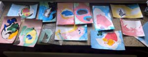 Jest to technika malowania farbami na wodzie. Każdy chętny uczeń wlewał po kilka kropel kolorowych farb do kuwety pełnej wody. Następnie patyczkiem mieszał farby i tworzył własny niepowtarzalny wzór. Jeśli projekt był gotowy, wkładał kartkę do kuwety,  która momentalnie pokrywała się wzorem.
