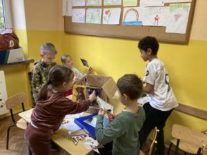 Podczas dzisiejszych zajęć w świetlicy wykonywaliśmy pudełko na dary dla zwierząt z Krakowskiego Schroniska, w ramach akcji: „Psia łapa, koci pazur 2025”, która odbędzie się w naszej szkole już w przyszłym tygodniu! Dzieci wycinały koty i psy z kolorowych czasopism, a następnie naklejały je na karton. Dziewczynki i chłopcy z dużym zaangażowaniem podjęli się zadania, w trosce o trudny los zwierząt żyjących w schronisku.
